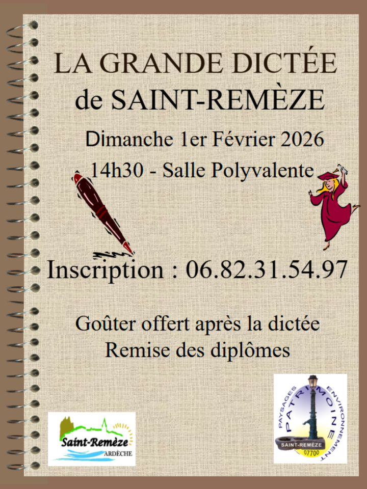 L’AG de notre association se tiendra le vendredi 23 janvier 2026 à la salle polyvalente de Saint-Remèze, à 18 heures.