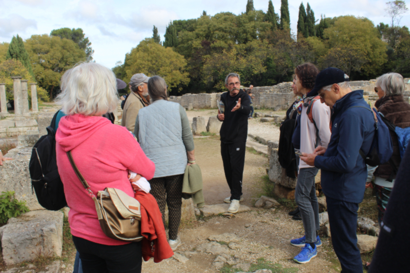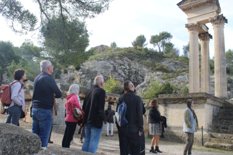 Ce fut d’abord la visite du site archéologique de Glanum par Maurice Turc, fondateur et ancien président l’association HistoireS Autrement. Le site s’est développé à proximité d’un défilé rocheux au pied des Alpilles. Il offre un ensemble monumental exceptionnel (temples, forum, basilique…), des aménagements hydrauliques et un quartier résidentiel avec des maisons à péristyle.