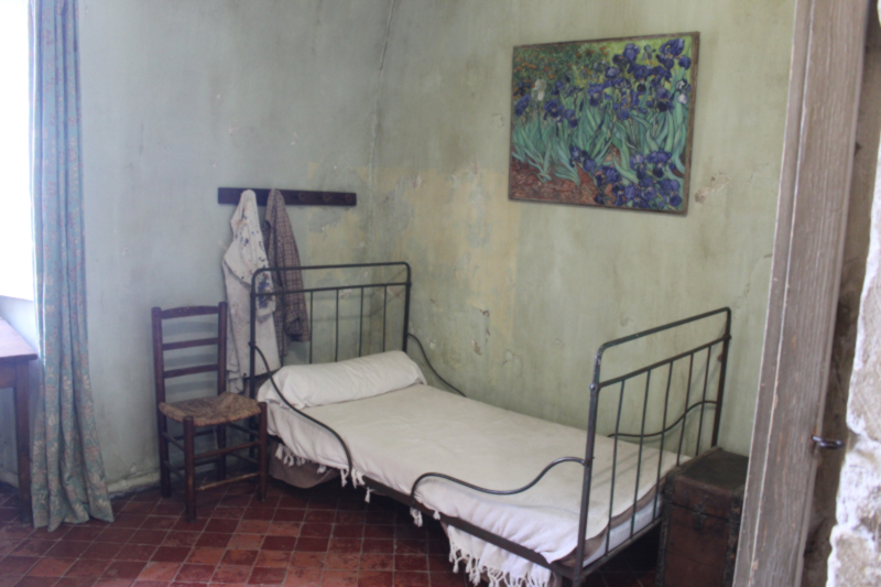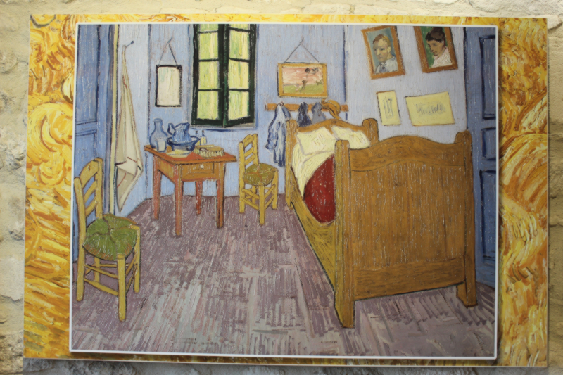 L’après-midi, ce fut visite du monastère de Saint-Paul de Mausole, aujourd’hui centre culturel et musée. C’est un chef d’œuvre de l’art roman provençal avec un magnifique petit cloître, l’ensemble réaménagé aux XVIIe et XIXe s. C’est aussi un musée Vincent van Gogh qui y a séjourné pour traitement pendant un an (1889-1890) juste avant sa mort. Van Gogh y a peint pendant son séjour une partie majeure de son œuvre comme la Nuit étoilée, les Iris, sa chambre, plusieurs portraits de lui… Sa chambre et son atelier sont reconstitués, avec de nombreuses reproductions de ses œuvres.
